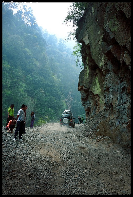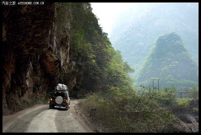 渡过萦河,正式爬山,一路颠簸,路况指数急剧降到40分以下,我们都不磕巴着说话了,只剩下丹璐妹在吉姆尼拥挤的后座上持续发出销魂的尖叫。