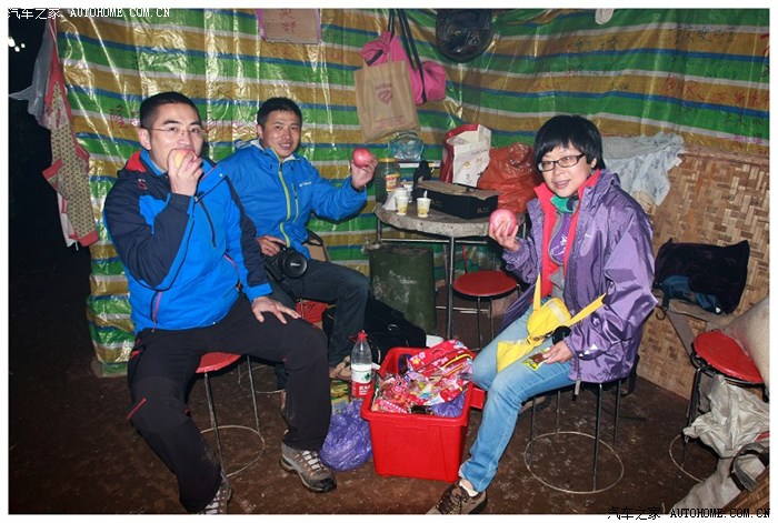 这次上山天气依然不好,下小雨,上山时间依然稍晚,有了上次的经验,于是我们果断投奔大帐篷,这次的住宿条件,比上次还要简陋凄惨,好在这次英明的带了一个大收纳箱,食物充足又防雨。
