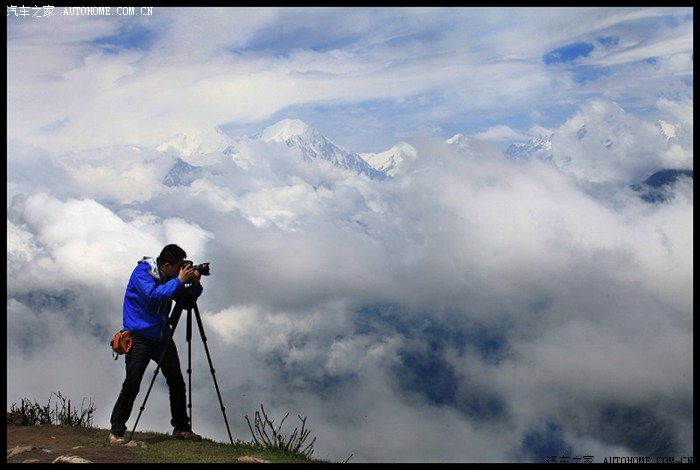 刚睡了半个多小时,5:20,外面人声鼎沸,开花兄神采奕奕的叫我起来拍日出,雾霭全消,牛背山的美景正式拉开序幕。。 远处,已经能看到皑皑的雪山,近处,云瀑四溢缓缓流动,相机是很难表达当时那行云流水的美