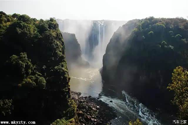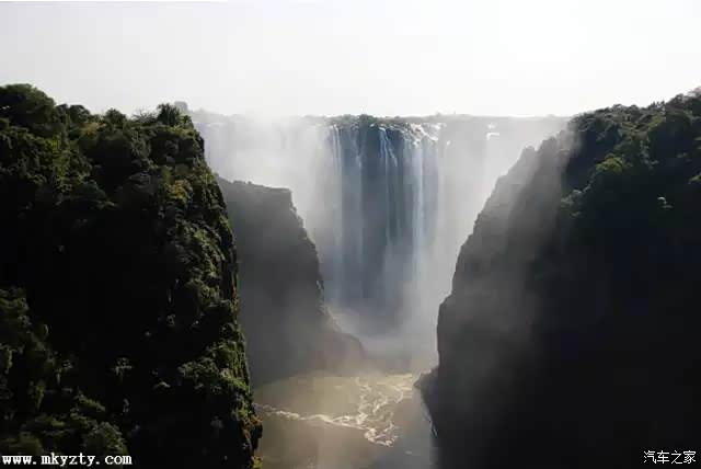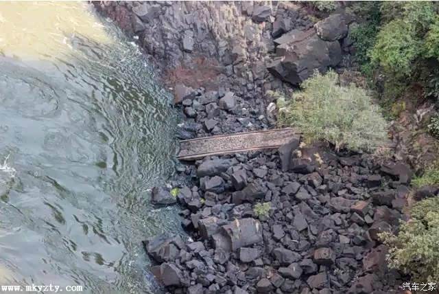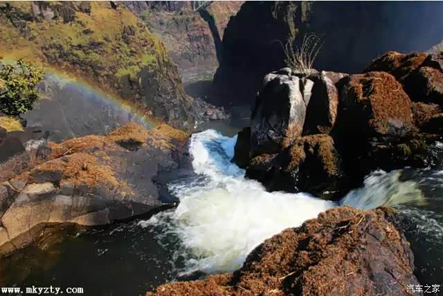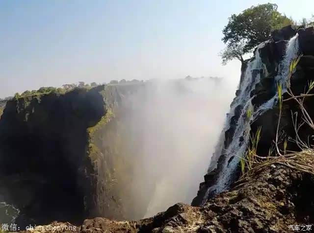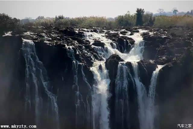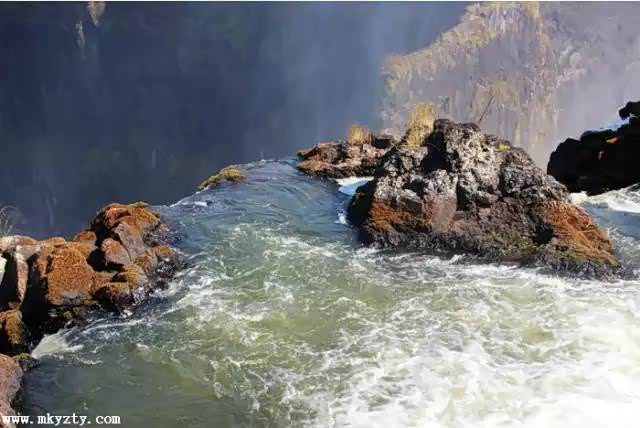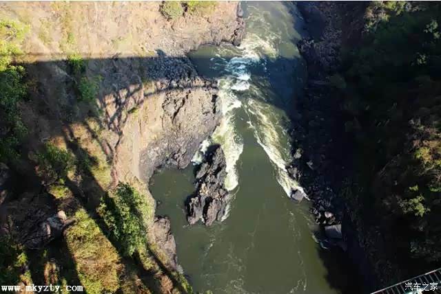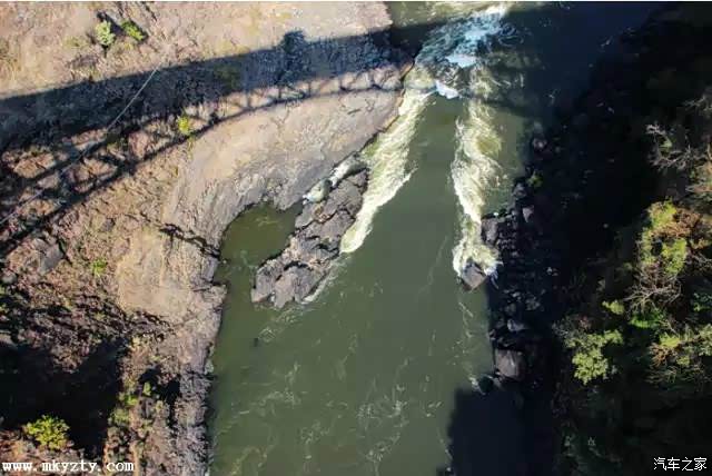 维多利亚瀑布还有一个凶险的魔鬼游泳池,从对面看就在一个凹槽里。