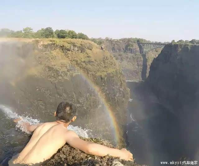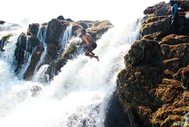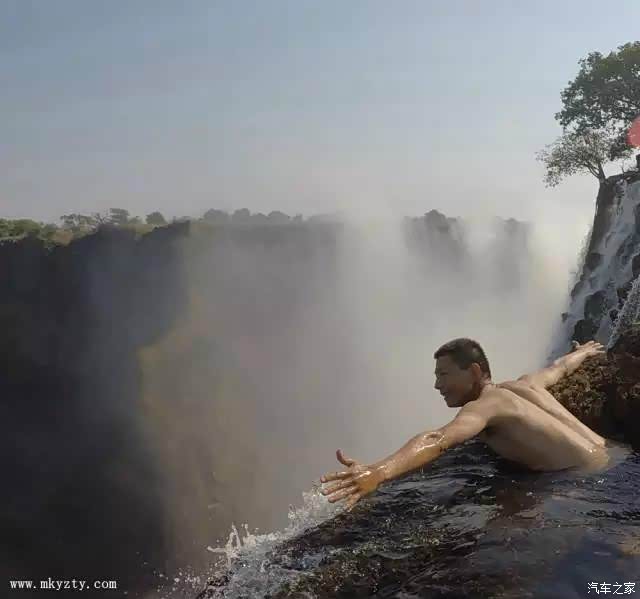 黑人还可以从3米高处跳到游泳池里,不是跳下悬崖哈。里面水流很急,稍不注意会被冲到悬崖边上。我只有看的份。