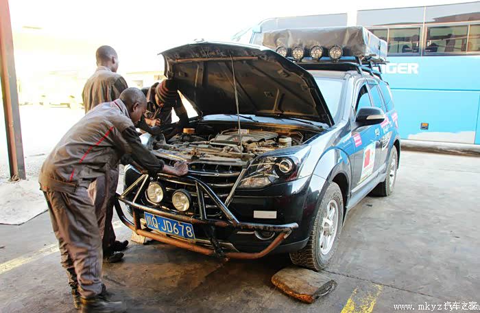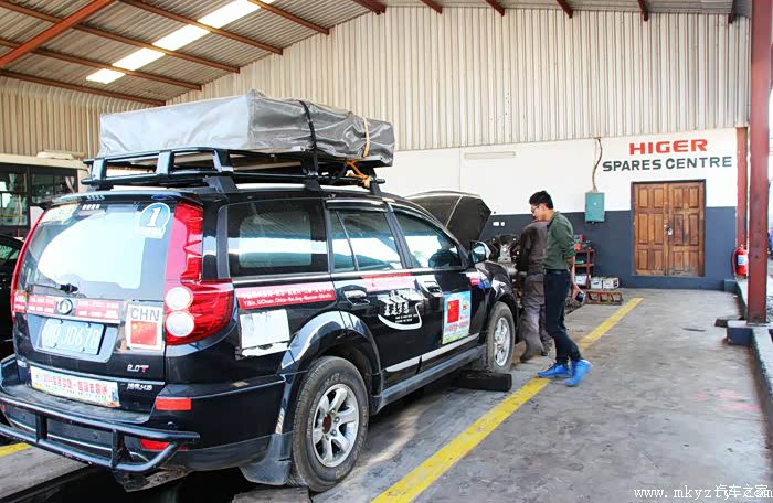 我的车门被撬坏了以后,可以锁门,就是任何一把钥匙都能打开。关键是没有锁的配件,这就麻烦了,不能锁门,连简单的防盗都谈不上了。赞比亚中华商会、福建同乡会的吴明会长叫我到他们维修厂去修锁和做免费保养。他们在这里是销售陕西海格客车的,做的不错。