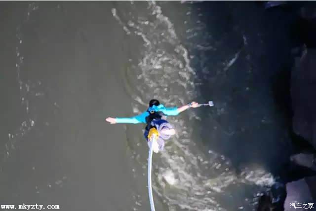 下坠的时候,头朝下,我带的玉佩忘了取下,感觉快要掉了,连忙把它含在嘴里。所以蹦极的时候,有些配饰和手表之类最好不要戴上。