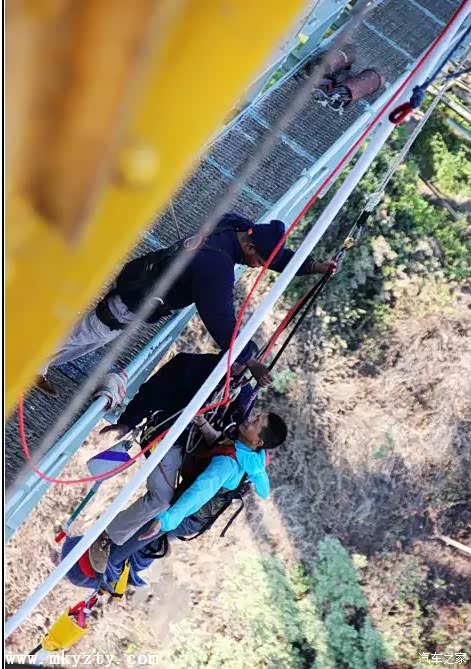 我告诉工作人员,跳跃的时候,不要推我,我可以自己跳。因为,我在碧峰峡蹦极的时候,前一个朋友就是还没有做好心里准备,被工作人员轻轻一碰就像小鸡一样挥舞着双手掉下去了,不是跳下去的。