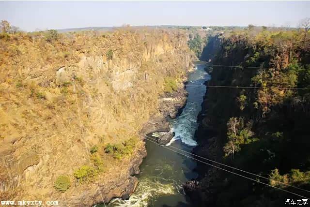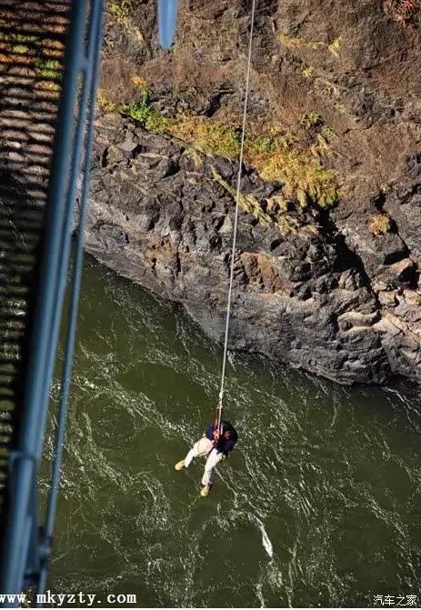 蹦极也在大桥上,桥下是赞比西河,河里据说有鳄鱼出没。
