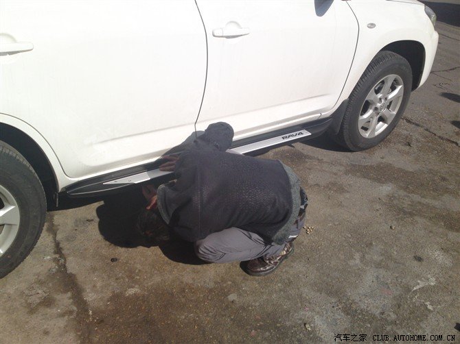 先装侧踏 师傅的技术很好 没多久就装的差不多了 很认真 赞一个