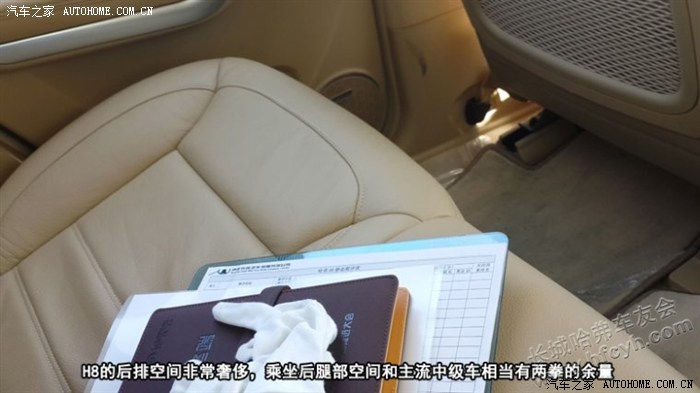 H8的后排空间非常奢侈,乘坐后腿部空间和主流中级车相当有两拳的余量,头部空间有一拳的空间,可隐藏的后排中央扶手很宽大,长途乘坐时可以搁放手肘。