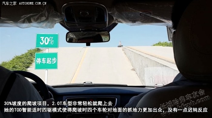 这次测试时有个30%坡度的爬坡项目,2.0T车型非常轻松就爬上去,她的TOD智能适时四驱模式使得爬坡时四个车轮对地面的抓地力更加出众,没有一点迟钝反应,轻松就上去了。
