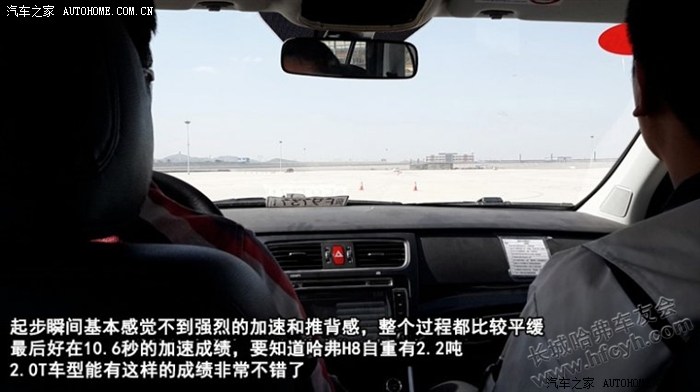 百公里加速指的是0到100km/h加速时间,是对哈弗H8动力最直观的体现,我们这次试驾的2.0T车型是采用TOD智能适时四驱模式,起步瞬间我基本感觉不到强烈的加速和推背感,整个过程都比较平缓,最后好在10.6秒的加速成绩,要知道哈弗H8自重有2.2吨,2.0T车型能有这样的成绩非常不错了,如果用3.0T来测试10秒以内完全没有悬念。
