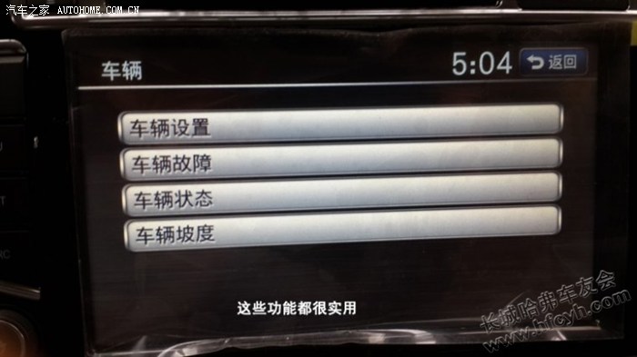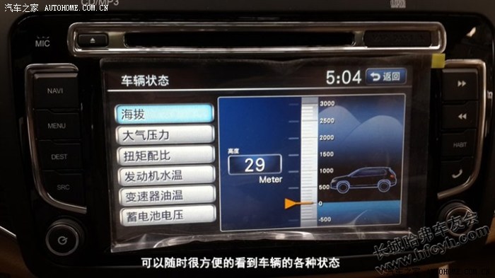 DVD采用歌乐主机,品质上相比H6的华阳更上一层楼,而且增加了很多新功能,例如:车辆设置、车辆故障、车辆状态、车辆坡度等都可以在DVD上操作实现。