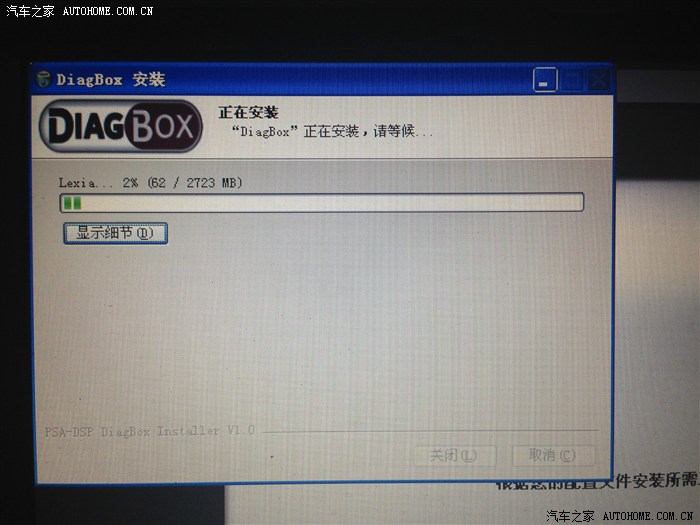 diagbox会自动开始安装过程,此处大约等待10分钟