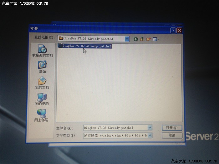 找到diagbox的iso文件(下载的压缩包里,解压缩开就有),选择打开