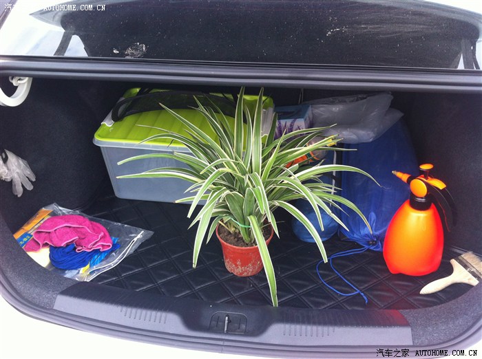 后背箱:储物箱+帐篷+抹布+水壶+刷子+刚买的花,后背箱垫还不错