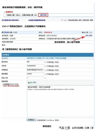 将自己的“作业帖链接”回复到“留言信息”中。如果已报名但未留参赛作业帖链接的请按下图操作。 (如下图所示)