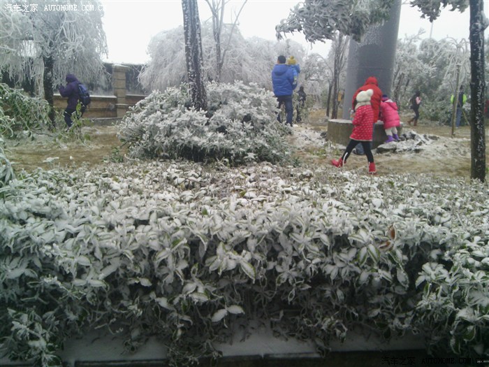 到达中途的最高点云岩服务区时,那里已经几乎是白色的世界,天空飘着丝丝蔓蔓的白霜。到达梅花镇,世界又褪去白色银装,恢复素颜,非常神奇。