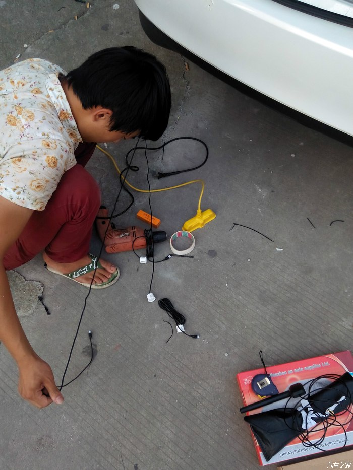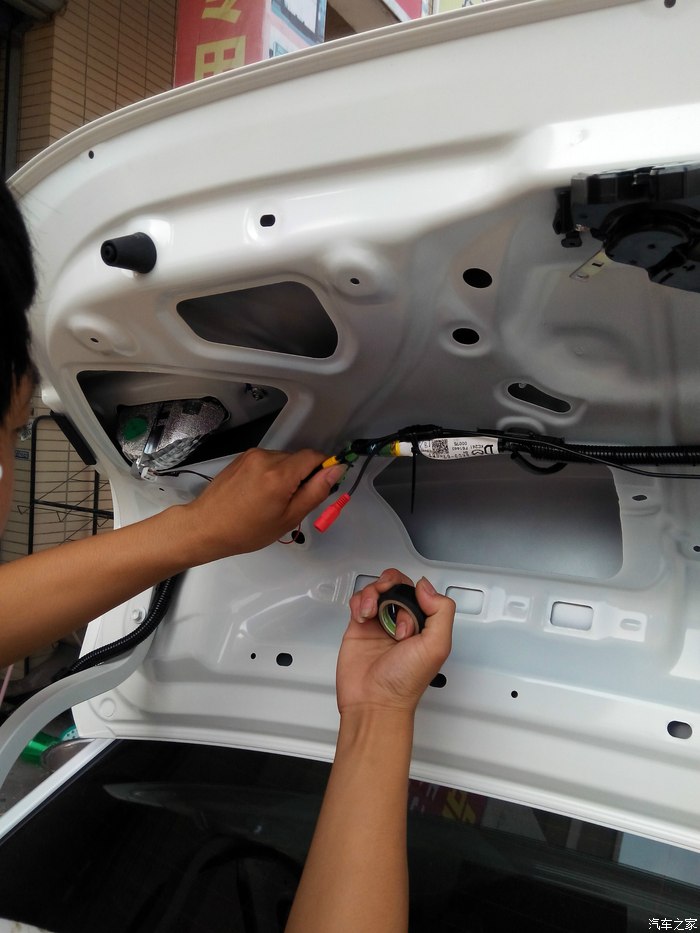 师傅的徒弟上马,先装倒车摄像头,两个人一起动手了