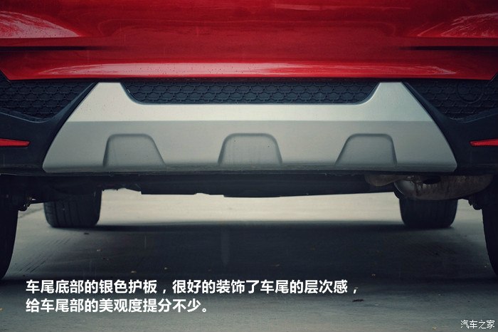 车尾底部的银色护板,很好的装饰了车尾的层次感,给车尾部的美观度提分不少。