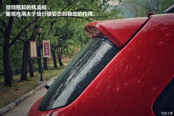 微微翘起的扰流板,美观作用大于给行驶姿态时稳定的作用。