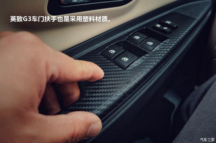 英致G3车门扶手也是采用塑料材质。