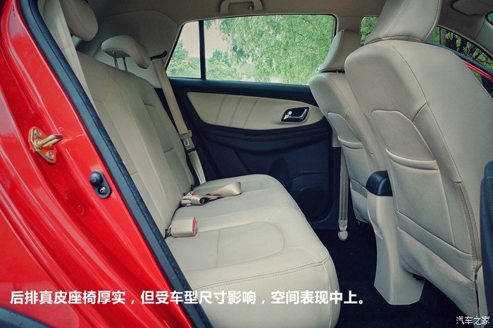 后排真皮座椅厚实,但受车型尺寸影响,空间表现中上。