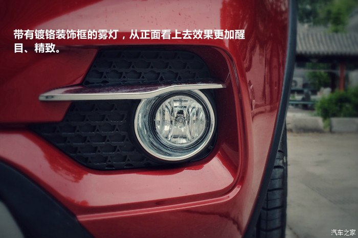 带有镀铬装饰框的雾灯,从正面看上去效果更加醒目、精致。
