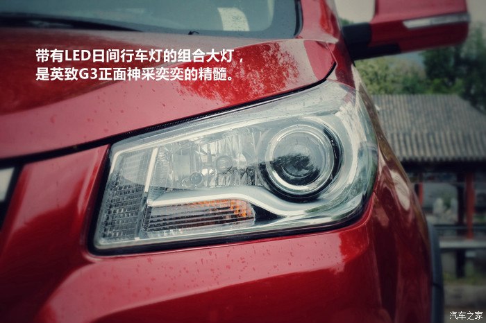 带有LED日间行车灯的组合大灯,是英致G3正面神采奕奕的精髓。