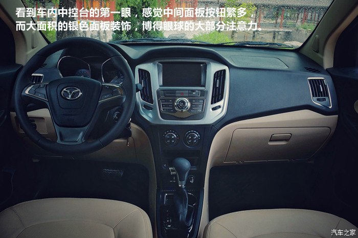 看到车内中控台的第一眼,感觉中间面板按钮繁多,而大面积的银色面板装饰,博得眼球的大部分注意力。