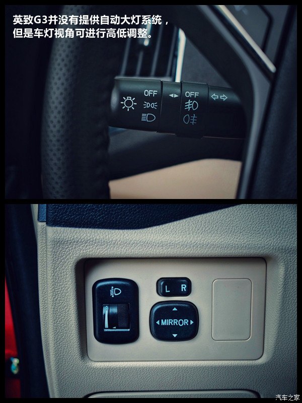 英致G3并没有提供自动大灯系统,但是车灯视角可进行高低调整。