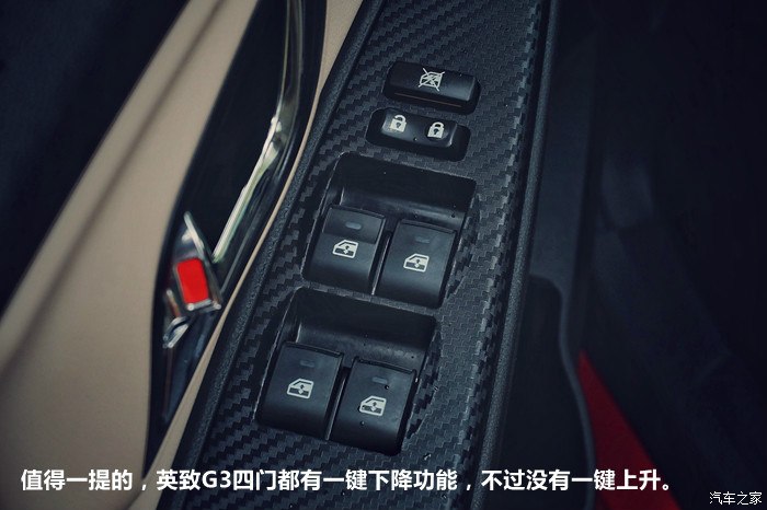 值得一提的,英致G3四门都有一键下降功能,不过没有一键上升。