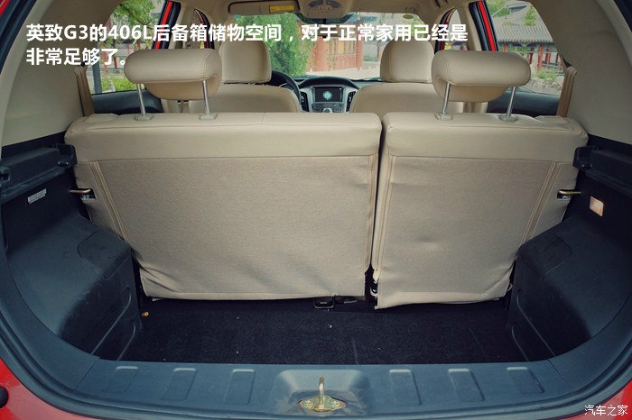 英致G3的406L后备箱储物空间,对于正常家用已经是非常足够了。