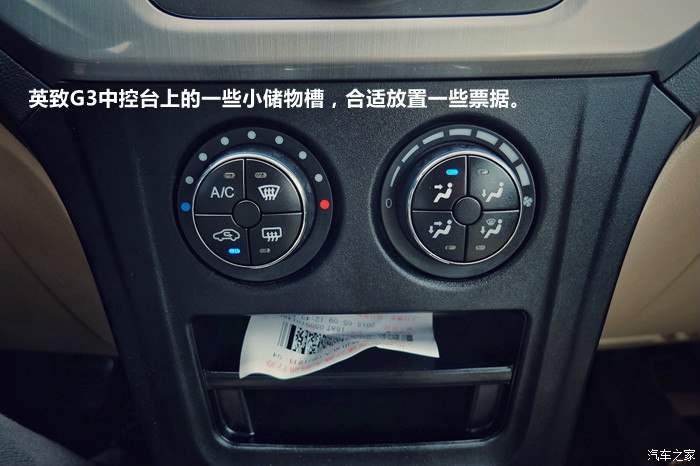 英致G3中控台上的一些小储物槽,合适放置一些票据。