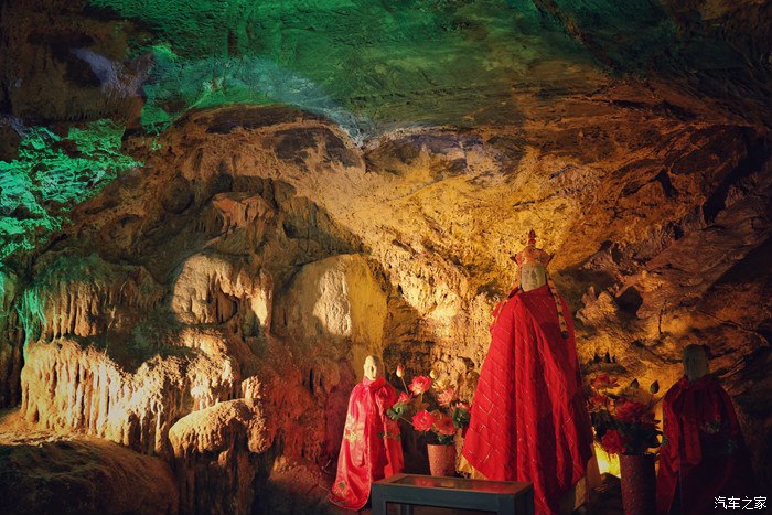 在距离洞口1公里左右,设置有停车场,并有摆渡车将游客载到入口附近,这当然是全部收费的,在提出要把车开到入口的软磨硬泡下,终于到达了石花洞入口。