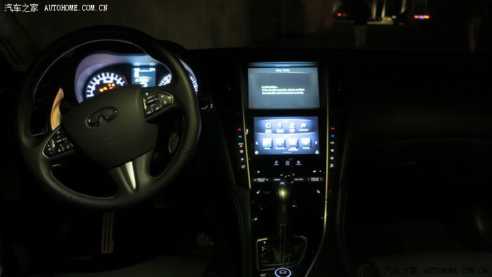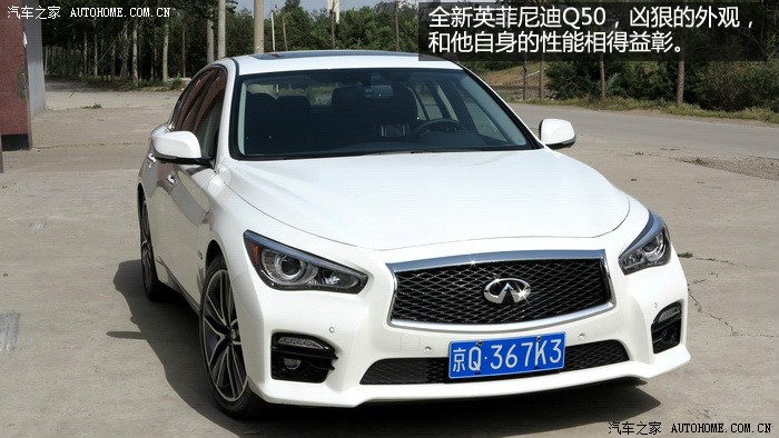 先介绍一下这次的车辆配备,是Q50产品中的旗舰车型,英菲尼迪Q50 2014款 3.5L Hybrid 旗舰版,搭配有代号VQ35的V6 3.5升发动机,配合电机可共同驱动车辆,也就是我们通常所说的强混,后轮驱动,配有最新英菲尼迪的DAS线控主动转向系统,这也是首款在量产车型上装备此系统,后面会会为大家介绍这套系统的日常驾驶感受。还有诸如超视距预防碰撞系统,倒车自动监测系统,全速段自适应巡航等一系列科技配置,对于其54.98的定价,个人认为还是能接受的。下面就主要聊聊这款车的驾驶感受,到底像不像英菲尼迪所说的一如既往的坚持运动驾驶感呢,我们来看看吧。