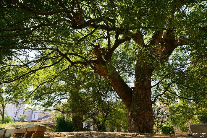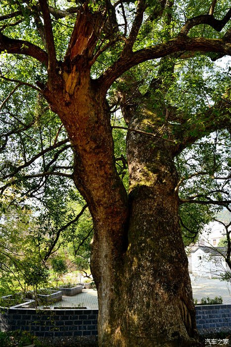 ▼ 到了村头,就看见这两棵硕大的古树,宏村古人利用“仿生学”原理规划并建造了堪称“中华一绝”的牛形村落和人工水系,统看全村,就象一只昂首奋蹄的大水牛,而这两棵村头的大树就是牛角。