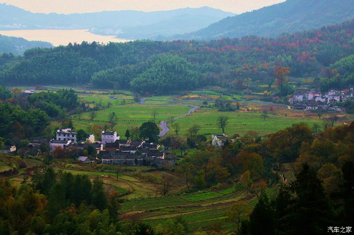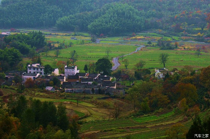 过了宏村隧道马上就是一个观景台,同时也是全国著名的摄影点----协里风光的拍摄地。协里位于世界文化遗产地宏村协里村,距宏村4公里。也许它的朴实未能引起太多的关注,它成了宏村周边村庄中唯一不收门票的村子,其中协里秋色更是让人流连忘返,仿佛置身斑斓色彩之中,是摄影及户外爱好者的必去之地。只不过今年闰九月的缘故,天气变化迟缓造成植被树叶变色并不明显,遗憾!