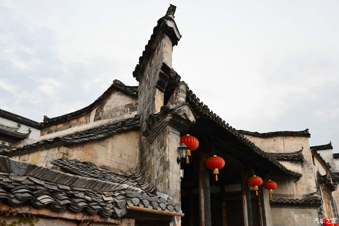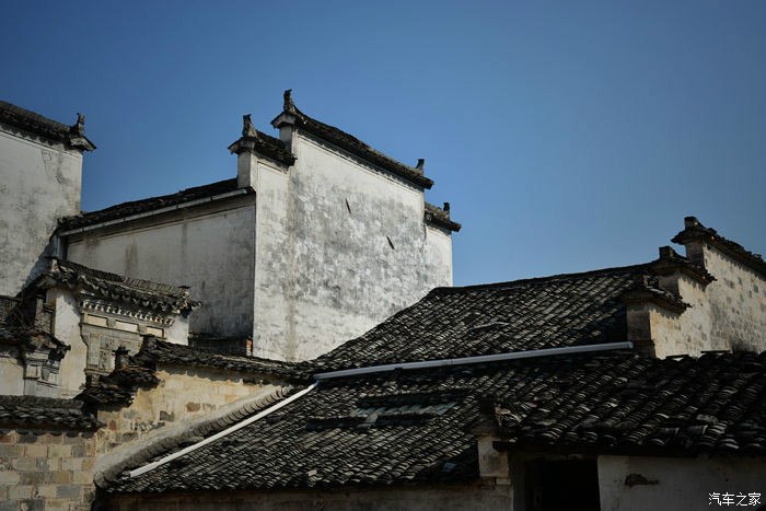 上下这两组图片是典型的徽派建筑,白墙灰瓦、马头墙,可以看得非常清楚!
