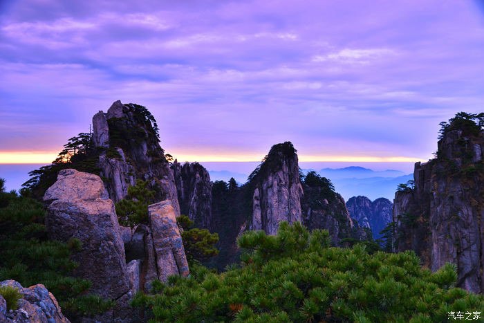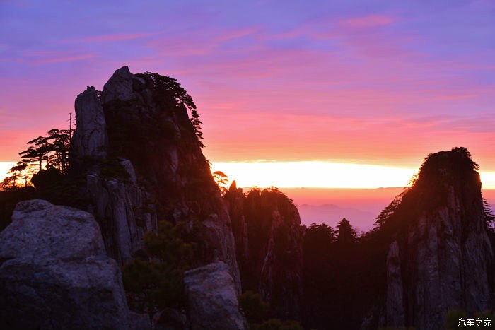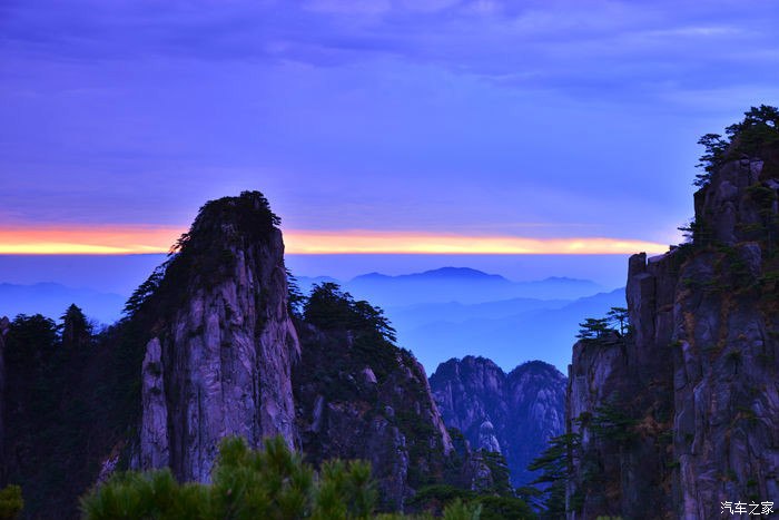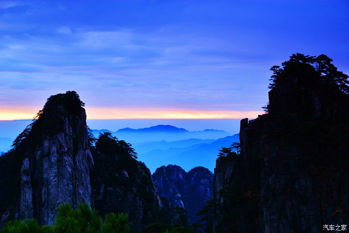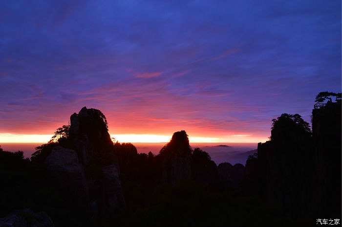 ▼ 这张天已大亮,如果有日出美景,绚丽的朝阳会从眼前这两峰之间喷薄而出,但现在,凑合看吧 ... ...