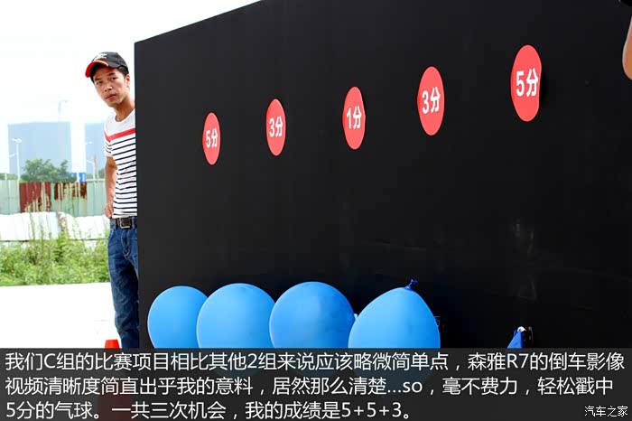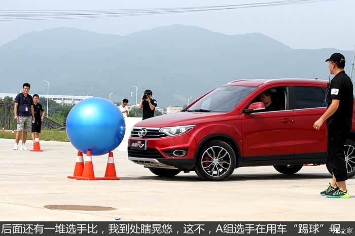 这是A组第一轮比赛用到的红色森雅R7?接下来,就让A组的选手们驾驶它来“踢球”吧~~