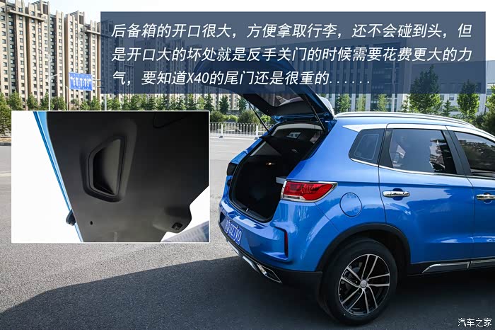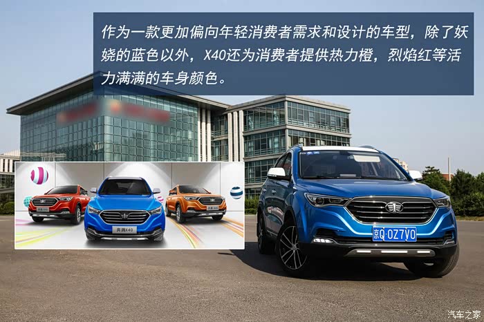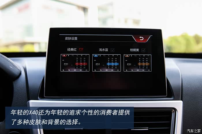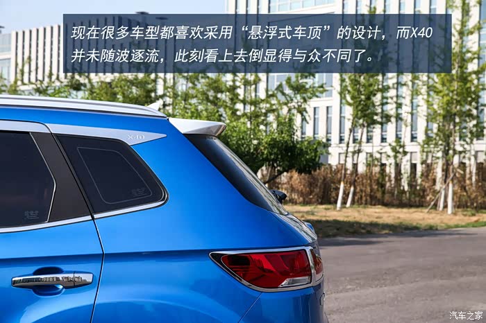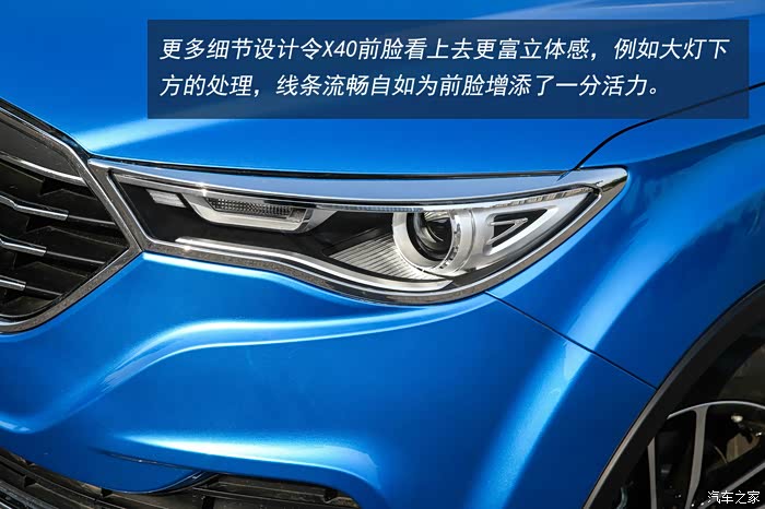 初次与X40相遇是在一个夏日午后,炫动蓝的车身颜色在炽热的阳光照耀下显得越发的浓艳,双色的车身设计也颇为前卫。而作为一款更加偏向年轻消费者需求和设计的车型,除了妖娆的蓝色以外,X40还为消费者提供热力橙,烈焰红等活力满满的车身颜色。