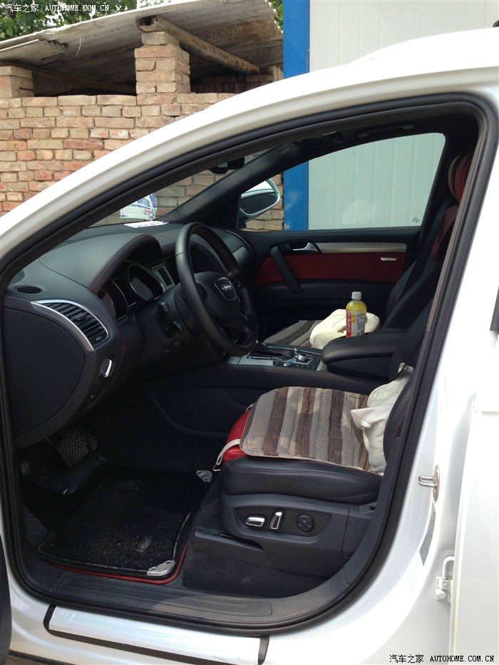 最后说说这q7:本来没想考虑买奥迪的,因为审美真的疲劳了。。。大街上跑的都是黑色的,觉得也就那样,但是无意看到一辆白色q7以后发现,其实我需要的它都有,也说不出来的感觉,尤其是内饰,相当喜欢,好!那就是你了!作业开始! 废话不说了 上图 了