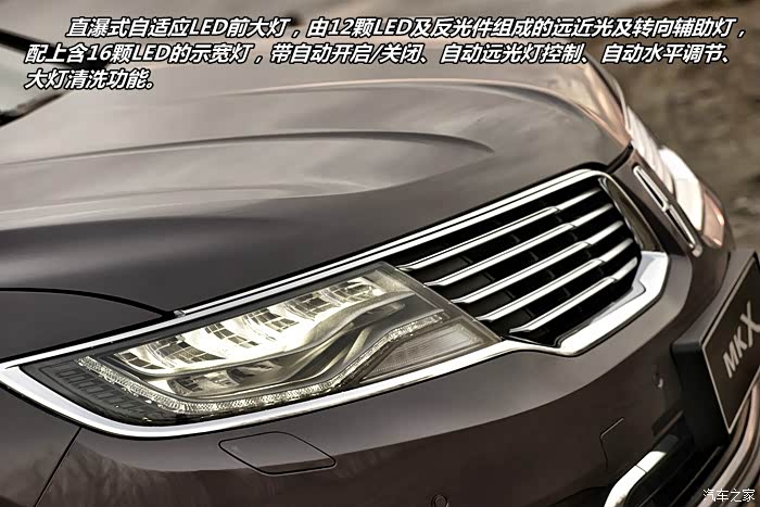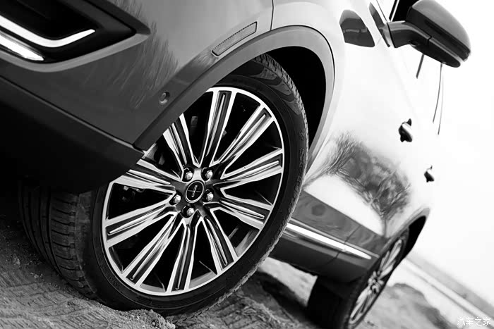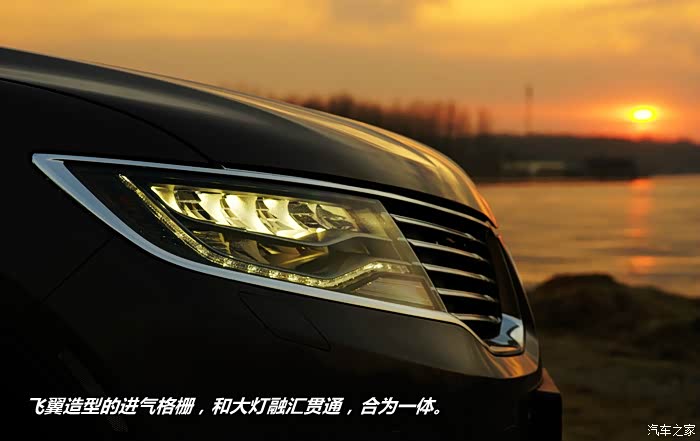 用黑白照片,就能体现出MKX的前脸的刚毅了吧,这点是不同于MKC和MKZ的稍有弧形的飞翼设计。而且下面的日间行车灯和镀铬装饰条混为一体,配合LED示宽灯让MKX的前脸看起来更加的霸气。