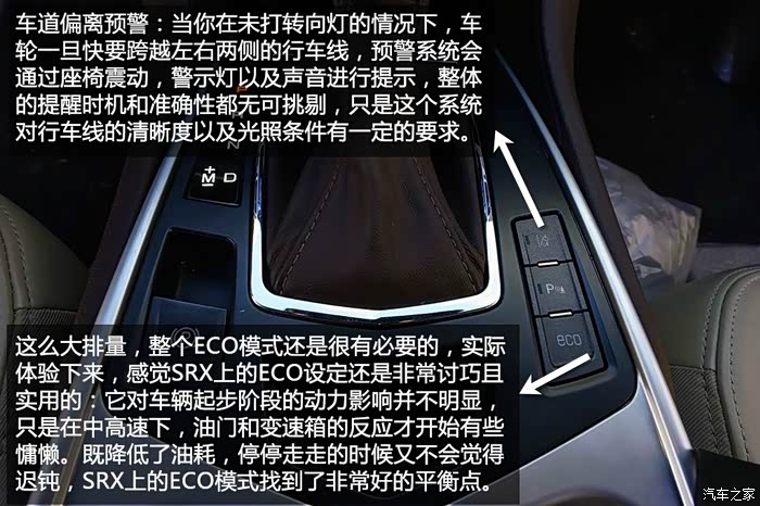另外还在路上刻意体验了一下SRX上的两个预警系统,分别是碰撞预警和车道偏离预警: