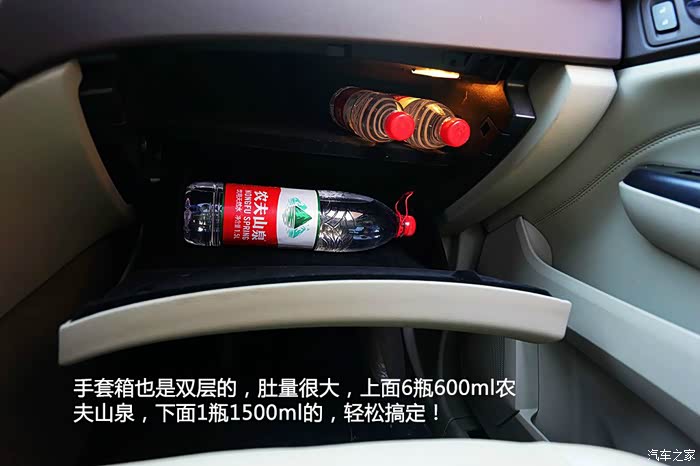 SRX在储物空间方面打起了数量牌:储物空间特别丰富,而且几乎所有储物都采用了双层设计理念
