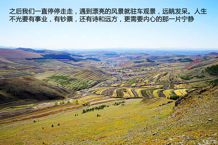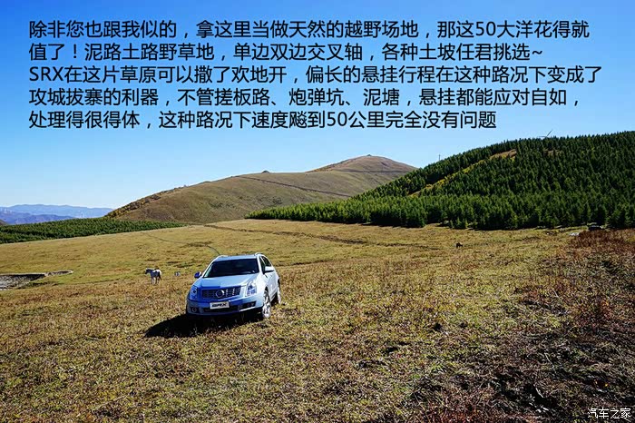 既然是凯迪拉克,既然是SUV,我实在是想不出在这金秋时节有比草原更适合它撒欢的地方了。既可以在山路上感受下驾控感受,又能很方便地找个野地撒欢儿,还能欣赏金秋美景,人生如此,夫复何求!