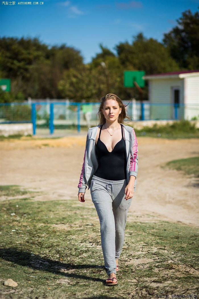 老婆看到海水,已经迫不及待的换上泳装,释放出对海水的思念。这气势像是在走T台。高叉泳装配运动服很有感觉。