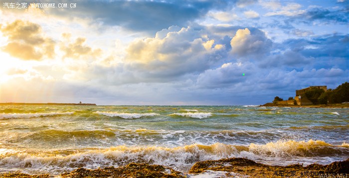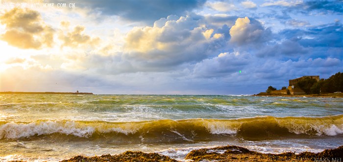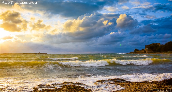 太阳从云层里面露出一缕光芒,照出一半海水一半火焰,我在岸边顶着大风追随着海浪,按着快门,有种与天地合一快感。