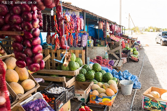 半路还有水果摊,买了些紫色甜洋葱做沙拉,还买了两个50斤一个的大西瓜。小摊的品种很是丰富,摆在一起很漂亮。