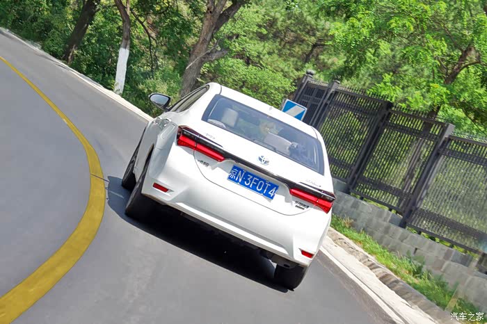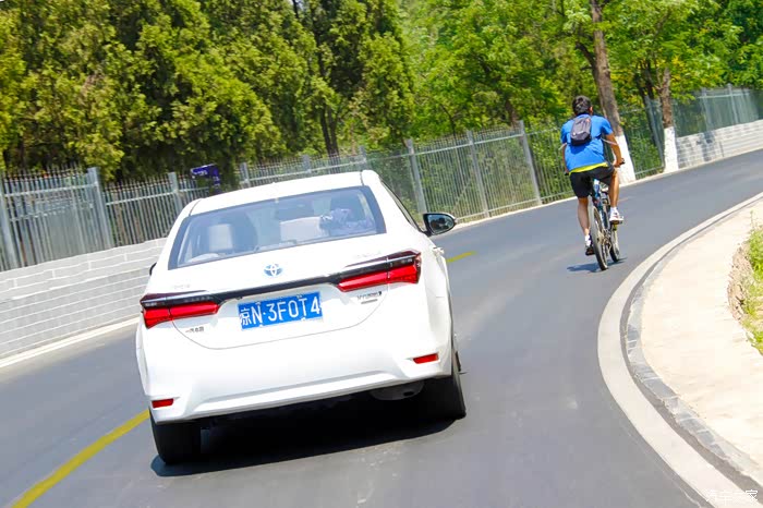 行驶在京郊地区,卡罗拉双擎带给我更多的惊喜,首先就是这个原本不受人待见的后悬挂形式,或许是由于电池组重量集中在后悬上,使得厂商的后悬调校更有韧性,遇到颠簸路面时后悬比前悬的弹跳幅度更小,而且也更快恢复的初始状态。也同样是因为这块电池组,带给卡罗拉双擎更均衡的前后配重,在山路驾驶时虽不可能如同运动车型般去攻弯,但作为卡罗拉而言,它还是能够获得不错的动态感受。