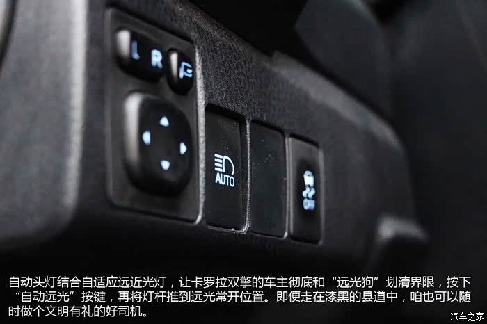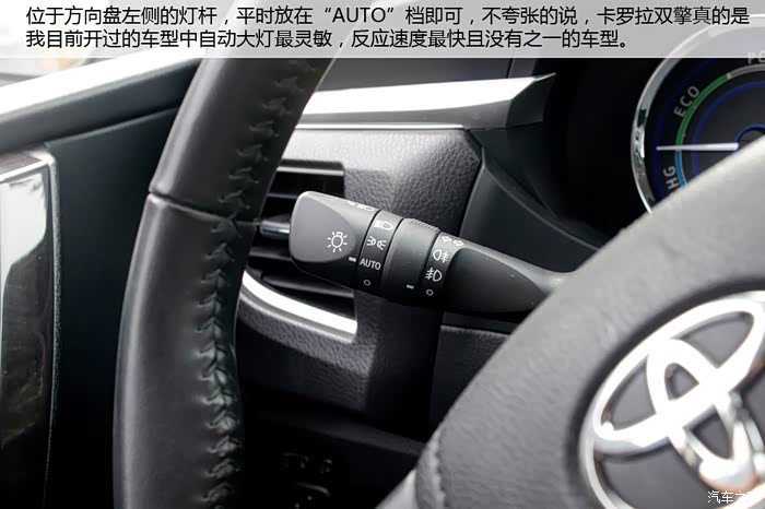 卡罗拉双擎的自动大灯的反应速度和敏感程度,真是我目前遇到的最快和最好的。哪么只是在晴天下穿一座铁路桥,也会在桥下的阴影区启动自动大灯,这点不仅是这辆卡罗拉双擎,同样在雷克萨斯的车型上得到体现。当别人看到这辆车在桥洞底下打开大灯时,多少人会觉得这样做是不是太显摆了,但我要说,没错,我就是要用这种方式来宣告我就是最好用的自动大灯。