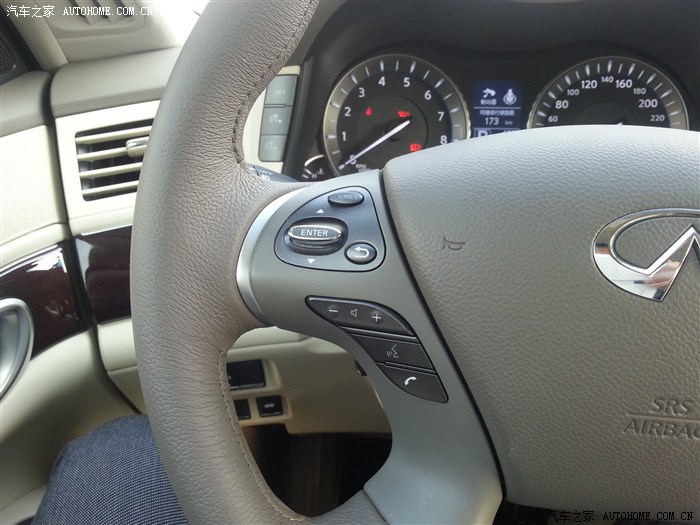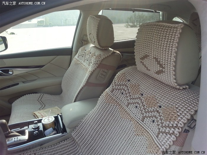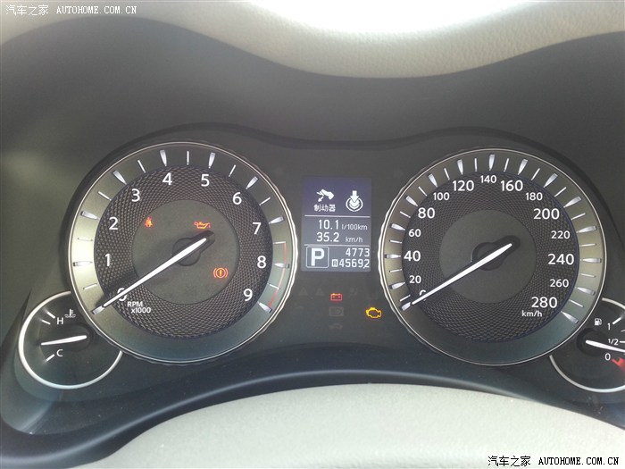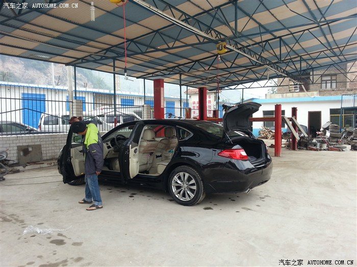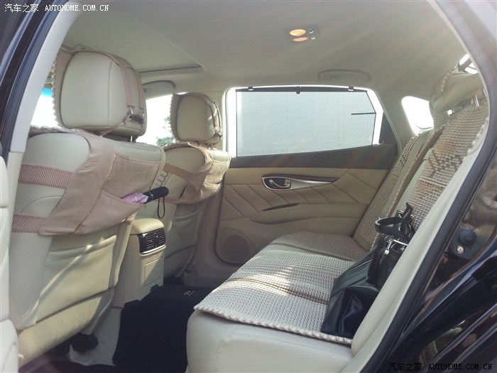 13年3月28日提的车,雅致版的紫玉黑+米内,未上牌之前已经上过作业,到今天刚好一个半月,长途比较多,油耗10.1L/100KM,平均速度35.2KM/h,综合油耗不错,很多M的车主油耗在13以上,很大程度上是市区开得比较多。VQ25在平顺性和动力储备方面令人满意,排气的声浪堪称享受,底盘悬挂的运动性和舒适性平衡得很好;高速方面速度上去后发动机会在不经意间降低转速来获得良好的油耗,如果需要急加速,只须深踩油门,VQ25随时会被唤醒;BOSE音响很棒,还有森林空调等诸多舒适性配置,总体非常满意。下面上图: